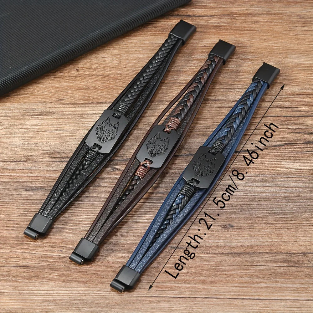 Viking Wolf Head Leather Bracelet